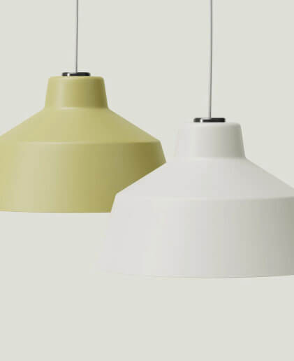 The Ratio Pendant Lamp featurees a wide lampshade, referring the bold and elegant shape classic metal penwdants. The lamp to features a spun steel shade with.