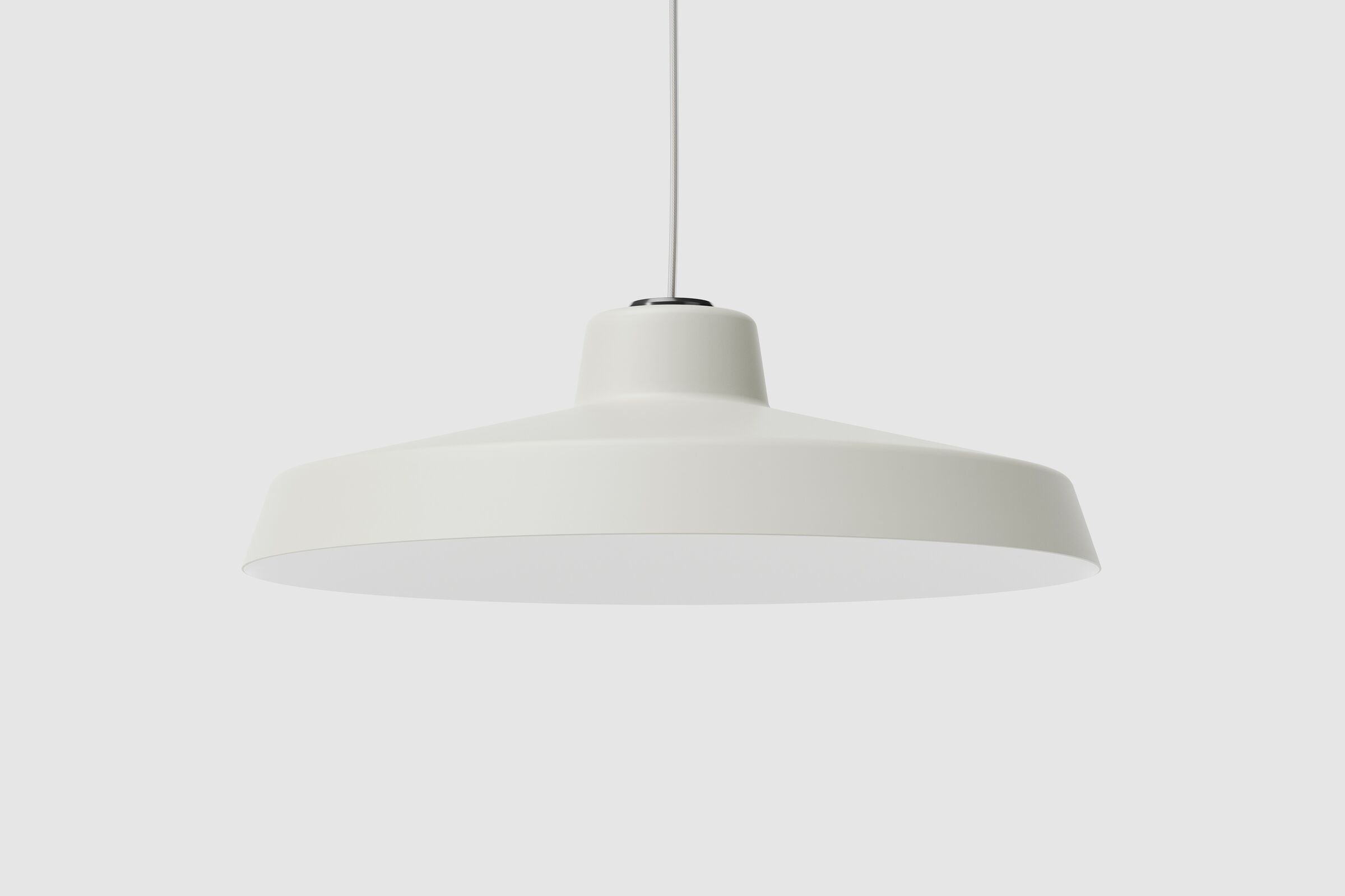 The Ratio Pendant Lamp featurees a wide lampshade, referring the bold and elegant shape classic metal penwdants. The lamp to features a spun steel shade with.